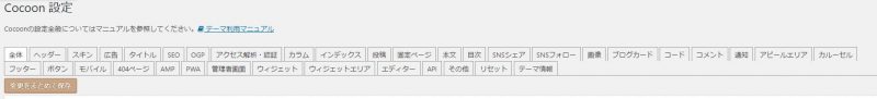 cocoonなら、とりあえず「cocoon設定」を開けば大体OK。これは助かる。